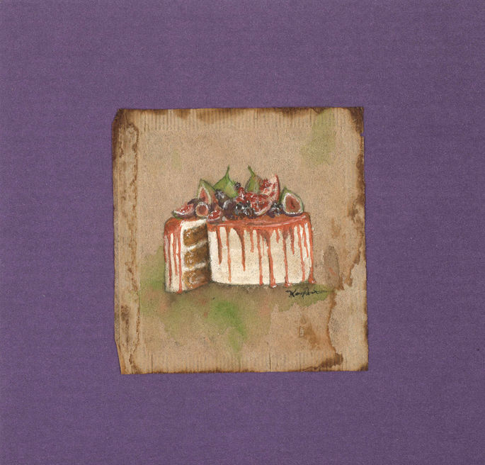 Miniature Art painted on used tea bags.